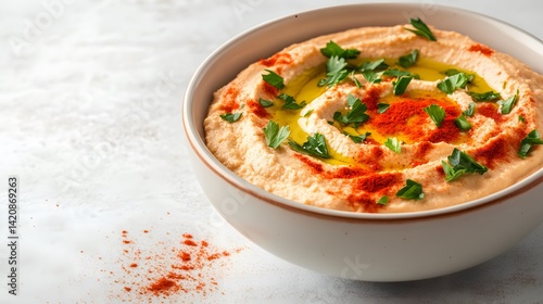 Delicious Creamy Hummus Bowl with Olive Oil and Paprika