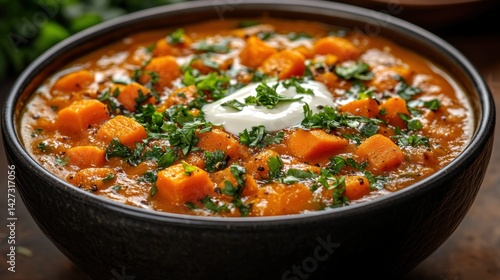 soup, creamy, delicious, receipe, food, cookery, dinner, lunch, meal, bowl, healthy, comfort, tasty, autumn, winter, vegetarian, vegan, orange, spice, herb, parsley, yogurt, dairy, seasoning, pepper, hot, warm, culinary, gastronomy, eat, epicure, epicure