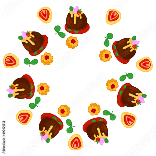 Delicious desserts, pastries, cupcakes, and chocolate slices. Set of colorful cartoon vector illustrations isolated on white background.