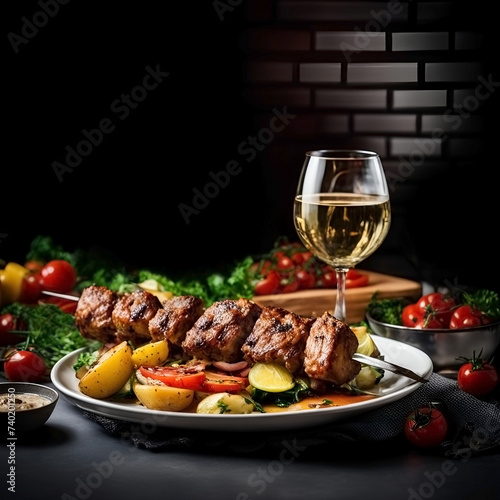 food, dinner, meat, steak, bar-b-q, fish, pork meat, beef, wine, red, hot, red wine, glasses, plate, cook, kitchen, vegetable, tomatoes, potato, broccoli, mashed potatoes, fried, baked, sauce, tenderloin, greener, eatery, home cooking, romantic, delicious, appetising, fresh, meal, lamb, grilled, salad, dish, roasted, epicure, cookery, roast, lunch, vegetable, cooked, chop, fillet