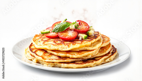 Delicious Finnish pancakes garnished with tomatoes and basil, culinary delight