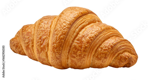 Delicious golden brown croissant pastry baked breakfast food photography close up bakery shop item image isolated on transparent white background