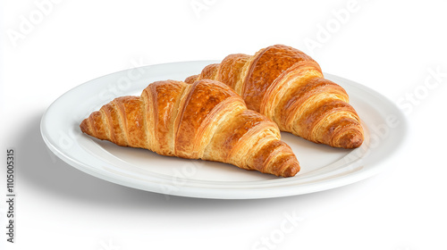 Delicious golden croissants on white plate, perfect for breakfast or brunch. Their flaky texture and buttery flavor make them delightful treat