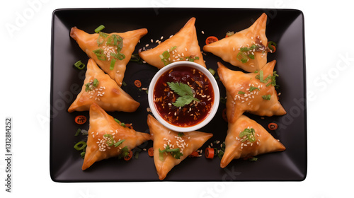 Delicious Golden Fried Samosas with Spicy Dipping Sauce Appetizer Food Photography Eat Dish Snack Lunch Asian Plate
