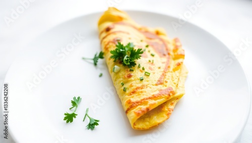 Delicious Golden Omelette Breakfast Food Image Plate Parsley Herbs eggs meal dish menu diet tasty