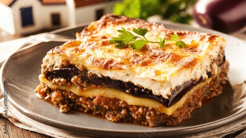 Delicious Greek Moussaka: Layers of Eggplant, Meat, and Creamy