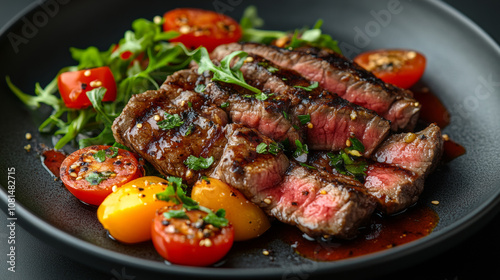 Delicious grilled beef medium rare ribeye steak plate food photography tasty meal gourmet fashion background with copy space. for cuisine dishes restaurant recipe advertising