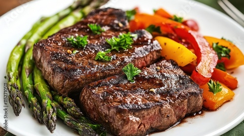 Delicious Grilled Steak with Roasted Asparagus and Bell Peppers