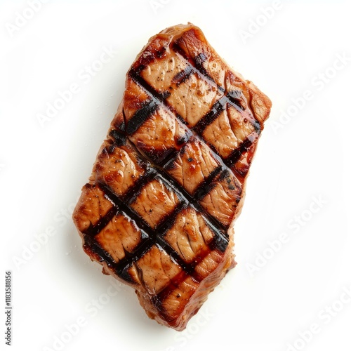 Delicious grilled tuna steak with beautiful grill marks on white background