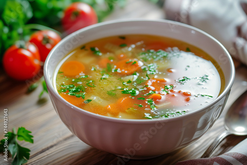 Delicious healthy bowl of vegetable soup close-up
