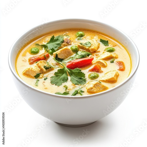 Delicious healthy chicken and vegetable soup in a white bowl, perfect for a hot lunch or dinner