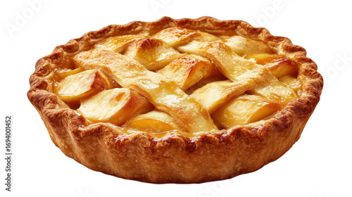 Delicious homemade apple pie with lattice crust on a transparent background food photography