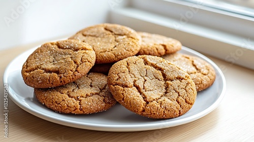 Delicious homemade cookies arranged on a plate, showcasing a golden-brown color and textured surface.