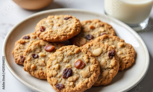 cookie, oatmeal, baked goods, dessert, homemade, grape, nut, sweet, treat, food photography, snack, healthy, comfort food, baking, plated, closeup, crispy, golden brown, milk, breakfast, sugar, cooking, tasty, soft, flour, butter, vanilla, sweet tooth, epicure, wholesome, cosy, indulgence, comfort, nutty, party food