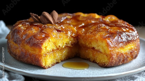 cake, dessert, baked, sweet, delicious, food, pastry, orange, upside down, homemade, receipe, cooking, baking, treat, honey, sirup, glazed, gold, brown, caramel, plate, tasty, sweetness, culinary, epicure, appetising, sugar, favor, aroma, warm, comfort, indulgence, rich, autumn, winter, creamy, buttery, snack, photo