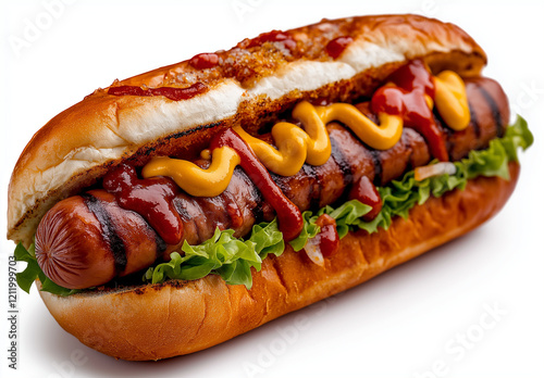hot dog, mustard, ketchup, lettuce, bun, grilled, sausage, condiment, fast food, snack, picnic, summer, food, bar-b-q, tasty, savoury, meal, epicure, american, comfort food, delicious, fresh, colourful, appetising, party, casual attire, culinary, food photography, relish, crispy, juicy, take-out, lunch, dinner, backyard, classic, indulgent, flavorful