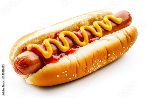 Delicious Hot Dog with Mustard and Ketchup on a White Background