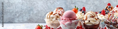 ice cream, various, dessert, food, parfait, serving, summer, sundae, sweet, line, eatery, nut, isolated, goggles, favor, panorama, artisanal, fruity, ice, many, hand-made, professional, fruit salad, individual, dairy, new, banner, header, craft, assortment, oreo, catering, presentation, different, tasty, delicious, idea