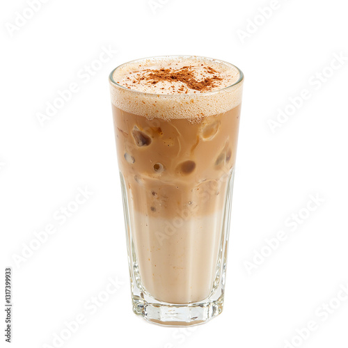 drink, glasses, isolated, transparent, chilled, cinnamon, spice, creamy, beverage, refreshing, white background, sprinkle, texture, centered, aromatic, delicious, cold, iced, latte, food and drink, refreshment, caffeine, comforting, relaxing, lactic