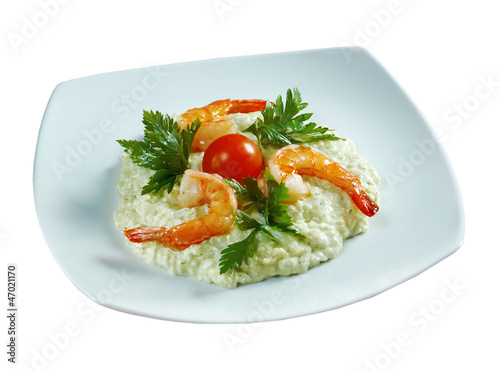 cheese, closeup, cookery, dinner, dish, drink, food, epicure, grain, italian, parmesan, parsley, plate, prepared, eatery, rice, risotto, savoury, seafood, seafood, shrimp, traditional, vegetable