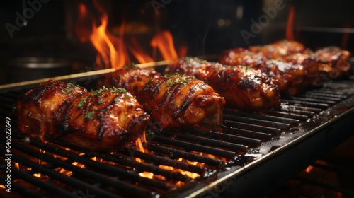 thigh, leg, meat, bar-b-q, food, grill, grilled, cooking, chicken, pork meat, bar-b-q, meal, fire, steak, shashlik, roast, dinner, skewer, coal, smoke, hot, picnic, roasted, cook, shish, sauce, herb, spice, seasoning, flames, piece, generative, ai, spicey, spice, broiled, bar-b-q, delicious, juicy