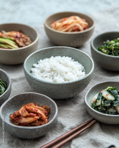 Delicious korean cuisine kimchi and rice home kitchen food natural light culinary art