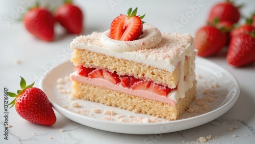 cake, dessert, strawberry, cream, sweet, layered, pastry, baking, food, fresh, treat, sliced, garnish, delicious, birthday, festive, celebration, receipe