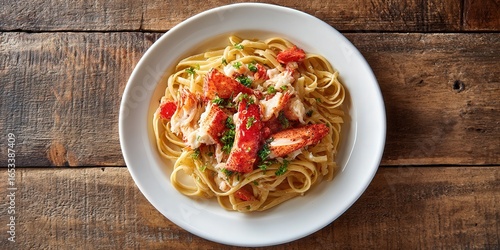 Delicious Lobster Linguine on Rustic Wooden Table: A Gourmet Seafood Delight