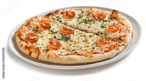 Delicious Margherita Pizza Freshly Baked Italian Cuisine with Tomatoes and Mozzarella Served on Plate