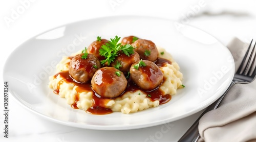 Delicious Meatballs in Rich Brown Sauce over Creamy Mashed Potatoes