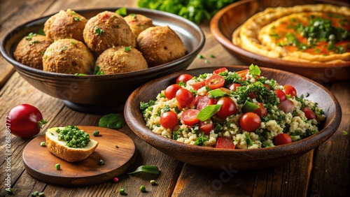 Delicious Middle Eastern Lunch: Tabbouleh, Hummus, Falafel & Pita Bread