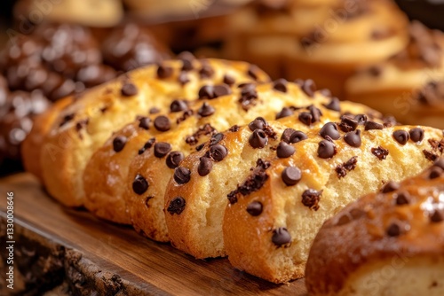 cake, loaf, mini, baking, chocolate, chips, topping, baked, dessert, sweet, food, treat, closeup, macro, delicious, bakery, pastry, tasty, epicure, breakfast, snack, serving, display, brown, gold, homemade, fresh, wooden, table, still life, indoor, commercial, menu, promoting, selling, preparing, eating, indulgence, appetising, arrangement