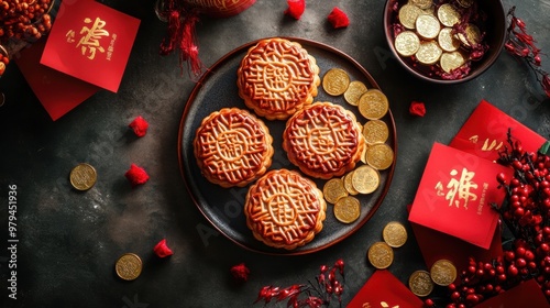 Delicious mooncakes arranged on a plate, surrounded by festive decor, symbolizing celebration and tradition during the festival.