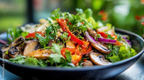 leaf, receipe, food, plate, eat, epicure, juicy, garden, vegetable, salad, bowl, cooking, alimentary, fresh, green, organic, tasty, vegetarian, crisp, bright, diet, healthy, farm, eatery, lettuce, pepper, onion, vegan, cookery, cafes, seasoning, texture, dish, lunch, sesame, dinner, delicious, colourful, favor, mushroom, red, meal, natural, side, seed