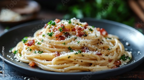 Delicious Pasta Carbonara with Parmesan Cheese and Bacon