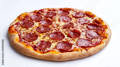 Delicious pepperoni pizza with melted cheese and tomato sauce hot red eat food meal tasty lunch round