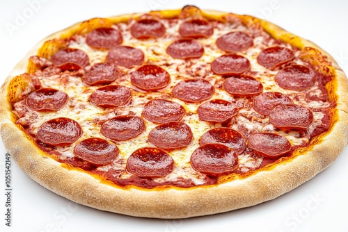 Delicious Pizza with Salami, Mozzarella, and Tomato Sauce on White Background