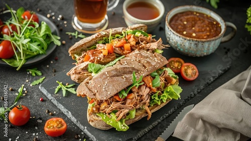 delicious, pull, pork meat, sandwich, fresh, green, cherry, tomatoes, dip, sauce, leaf, epicure, dress, red, board, egg, art, grill, cook, treat, stack, craft, side, close, fill, serve, black, chef, spice, blend, bright, brunch, fare, plate, melt, dark, dine, street, feast, herb, fries, bun, roast, fast, crave, bar-b-q, accessing, cheese, slice