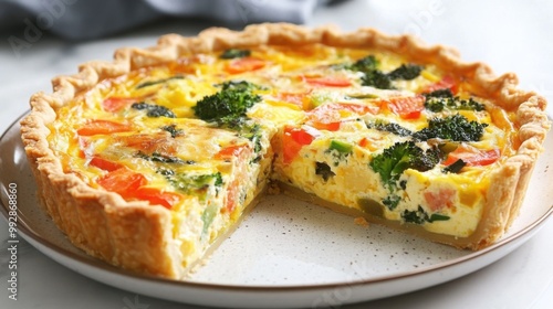delicious, quiche, served, beautiful, round, plate, garnished, herb, fresh, tomatoes, honed, cosy, brunch, gathering, savoury, pie, breakfast, baked, dish, egg, cheese, crust, meal, epicure, cooking, baking, homemade, vegetarian, food, culinary, receipe, hearth, kitchen, dining, party, ingredient, colourful, appetising, seasonal, picnic, wholesome, skill, dinner, lunch, specialty, presentation