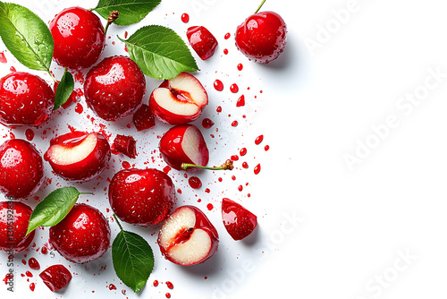 cherry, liquid, healthy, background, food, isolated, nature, berry, white, diet, bubble, motion, sweet, falling, juice, ripe, closeup, wave, juicy, macro, health, wet, colours, transparent, vitamin, flowing, summer, refreshment, beverage, vector, clear, closeup, blue, design, cold, leaf, freshness, object, flow, green, abstract, delicious, splashing
