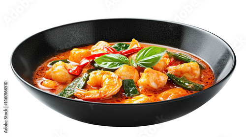 Delicious Red Thai Curry with Shrimp Recipe Images isolated on transparent background