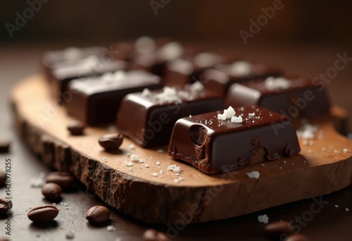 delicious rich dark chocolate blocks garnished flaky sea salt indulgent flavor experience, cocoa, bar, treats, sweet, gourmet, artisan, bittersweet