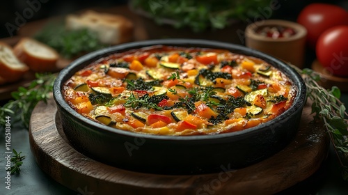 quiche, vegetable, kale, courgette, bell, pepper, herb, baking, homemade, comfort, healthy, artisan, satisfying, dining, fresh, meal, warmth, colourful, rustic, presentation, option, cooking, atmosphere, cosy, bread, taste, delight, vegetarian