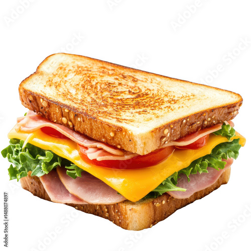 Delicious sandwich with ham isolated on transparent background