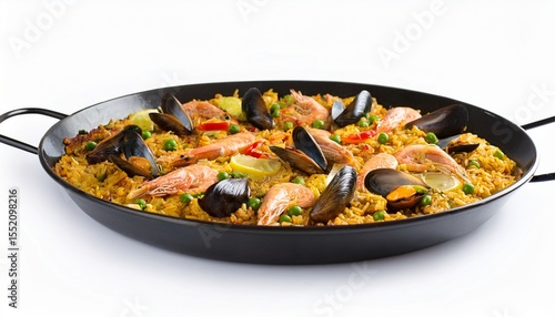 Delicious Seafood Paella Saffron Rice, Shrimp, Mussels, and Lemon
