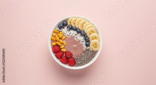 smoothie, bowl, fruit, seed, banana, berry, raspberry, blueberry, almond, healthy, breakfast, food, pink, background, delicious, fresh, alimentary, colourful, snack, diet, morning, nut, vegan, meal, mint, oat, vibrant, ingredient, dessert, creative, texture, culinary, design, decorative, homemade, organic, lifestyle, sweet, topped, refreshing, tasty, garnish, artistic, trendy