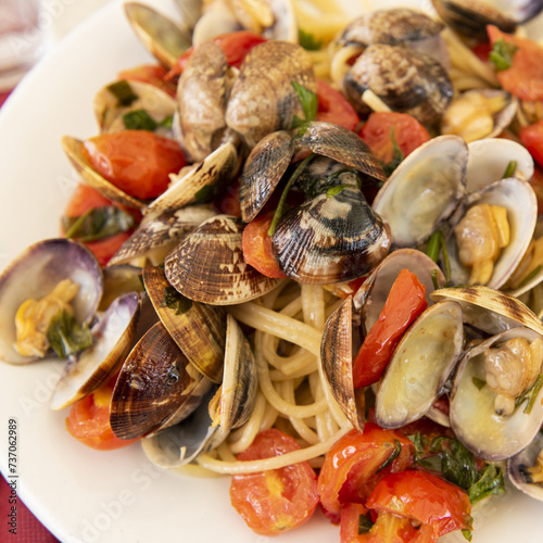 delicious spaghetti with clams and tomatoes