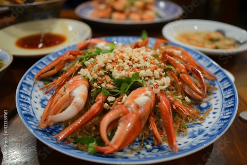 crab, stir fry, spicey, seafood, asian cuisine, chinese food, thai food, delicious, dinner, lunch, eatery, food photography, culinary, cookery, tasty, plate, noodle, cilantro, garlic, ginger, soy sauce, vermicelli, seafood, crispy, savoury, hot, fresh, meal, oriental, flavorful, aromatic