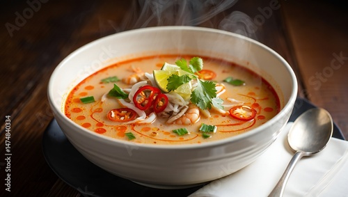 Delicious Spicy Tom Yum Soup with Shrimp and Noodles