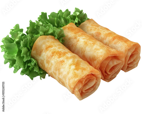 Delicious spring rolls with fresh lettuce, isolated on a white background, transparent background.